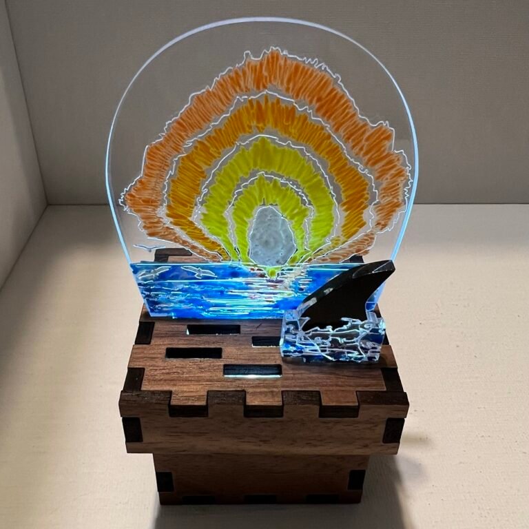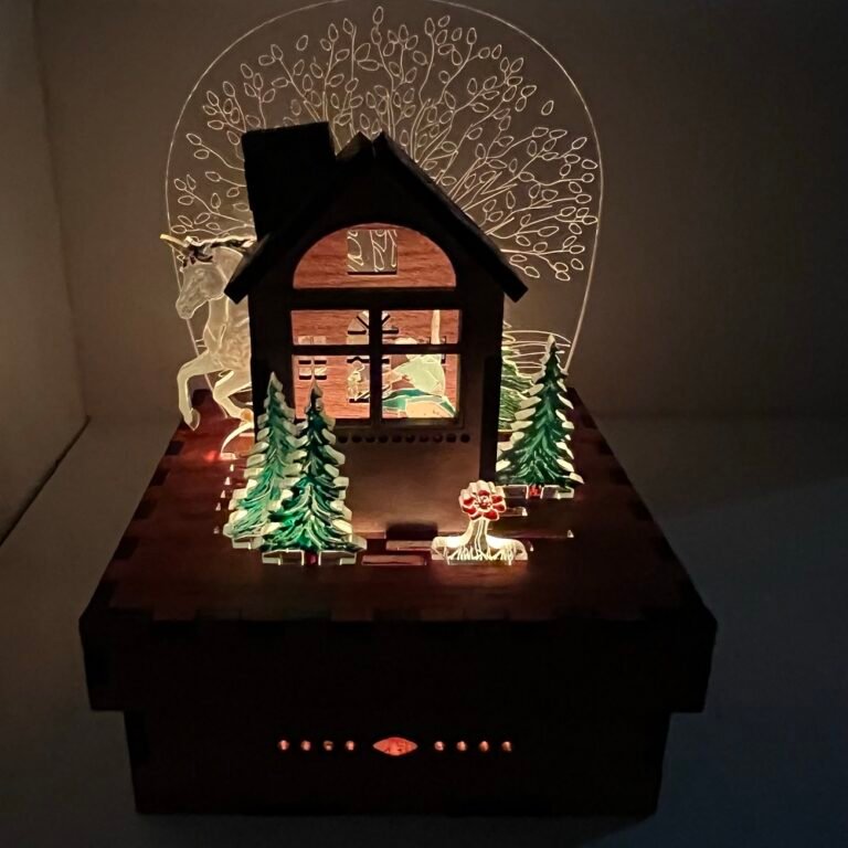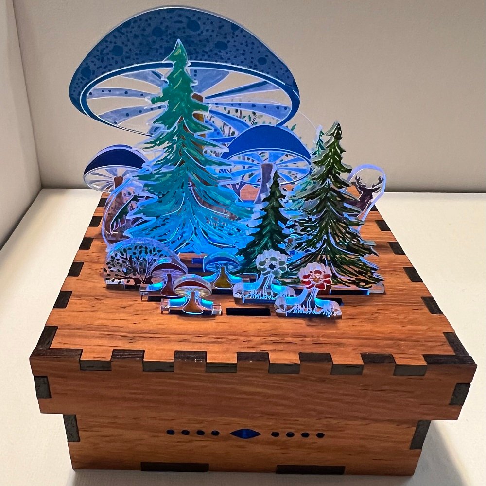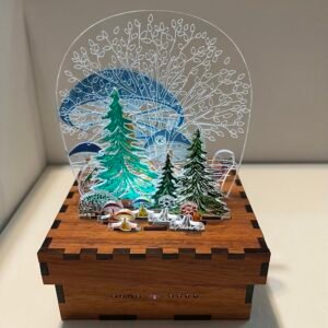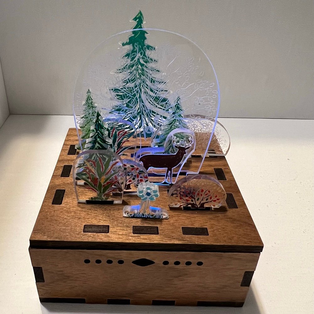 Finished scenes are fully assembled and painted by us. Each one is a complete composition, accented by crafted wood, layered lenses, and hand-applied details.
