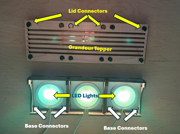 Additional components allow the night light to grow from Modest → Large → Grandeur.