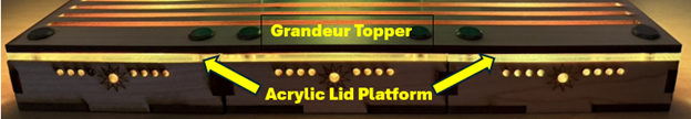 A Grandeur Topper spans 3 bases. All stages use the same Modest platform lids and lenses.