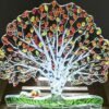 Designs are engraved into clear acrylic sheets (often called Plexiglass). The design is then cut out to create what we call a lens.