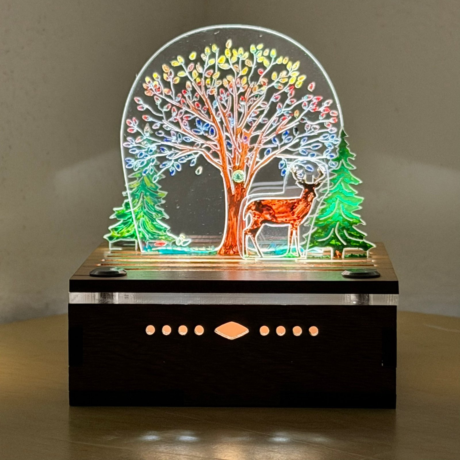- Select the wood for your stage base and lid (Cherry, Maple, Oak, Mahogany or Walnut).